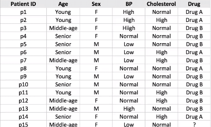 The technique we used to create this diagram can be generalized with a real-world example where we want to create an AI model to prescribe medicine. We will use this simple dataset.