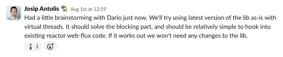 Bringing the story back to the Slack thread case, the API gateway is one such Reactor-based application. It’s unrealistic to expect that it will be rewritten to avoid using Reactor anytime soon. Fortunately, there’s no need to do that.