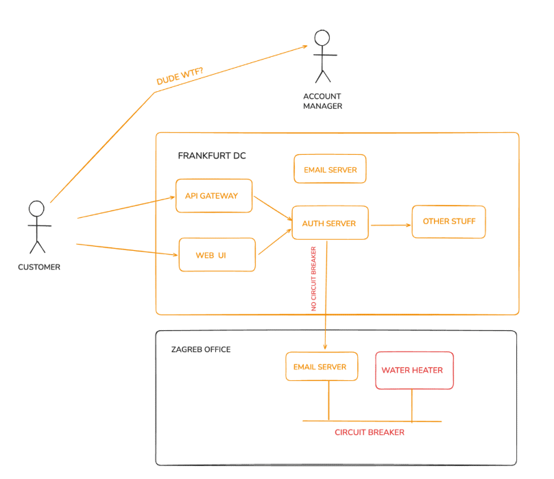 The next thing we know is that we are getting a ton of angry calls from our customers. I don’t remember the details, but it was connected somehow, a boiler in Zagreb crashed the servers in Frankfurt.